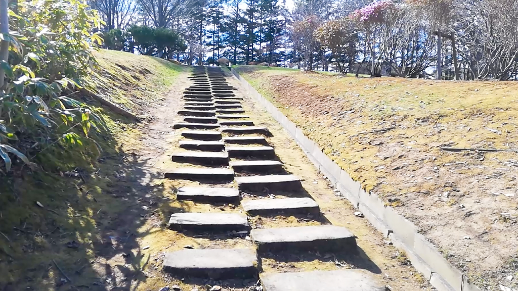 管理棟近くには小山ようなものもあり、登るとベンチがあり景色を楽しめます。