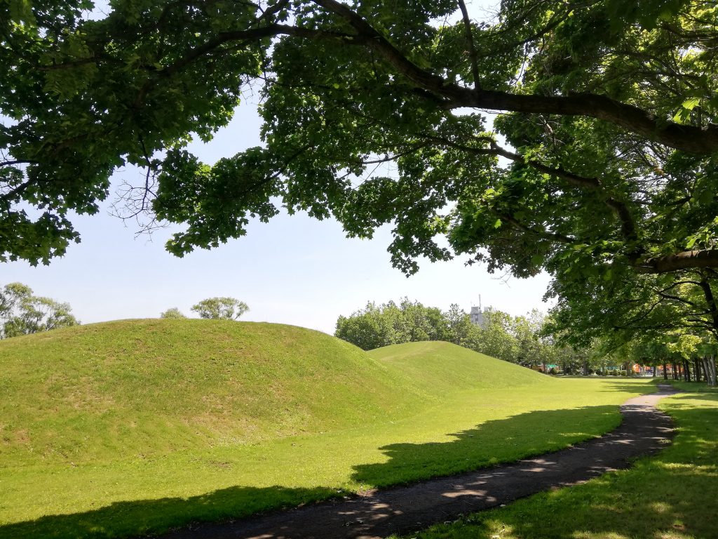 広々とした芝生広場には小山が2つ連なっていて、冬はその山でソリ滑りやスキーの練習をする子供の姿が見られます。