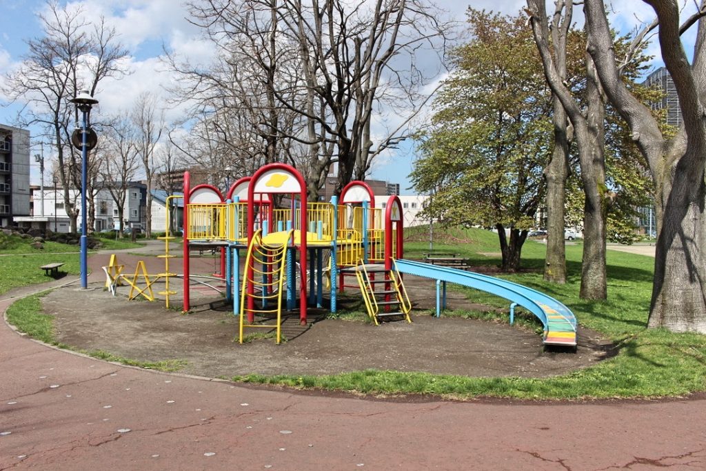 水遊び場が親子連れに大人気!住宅街にある東札幌公園